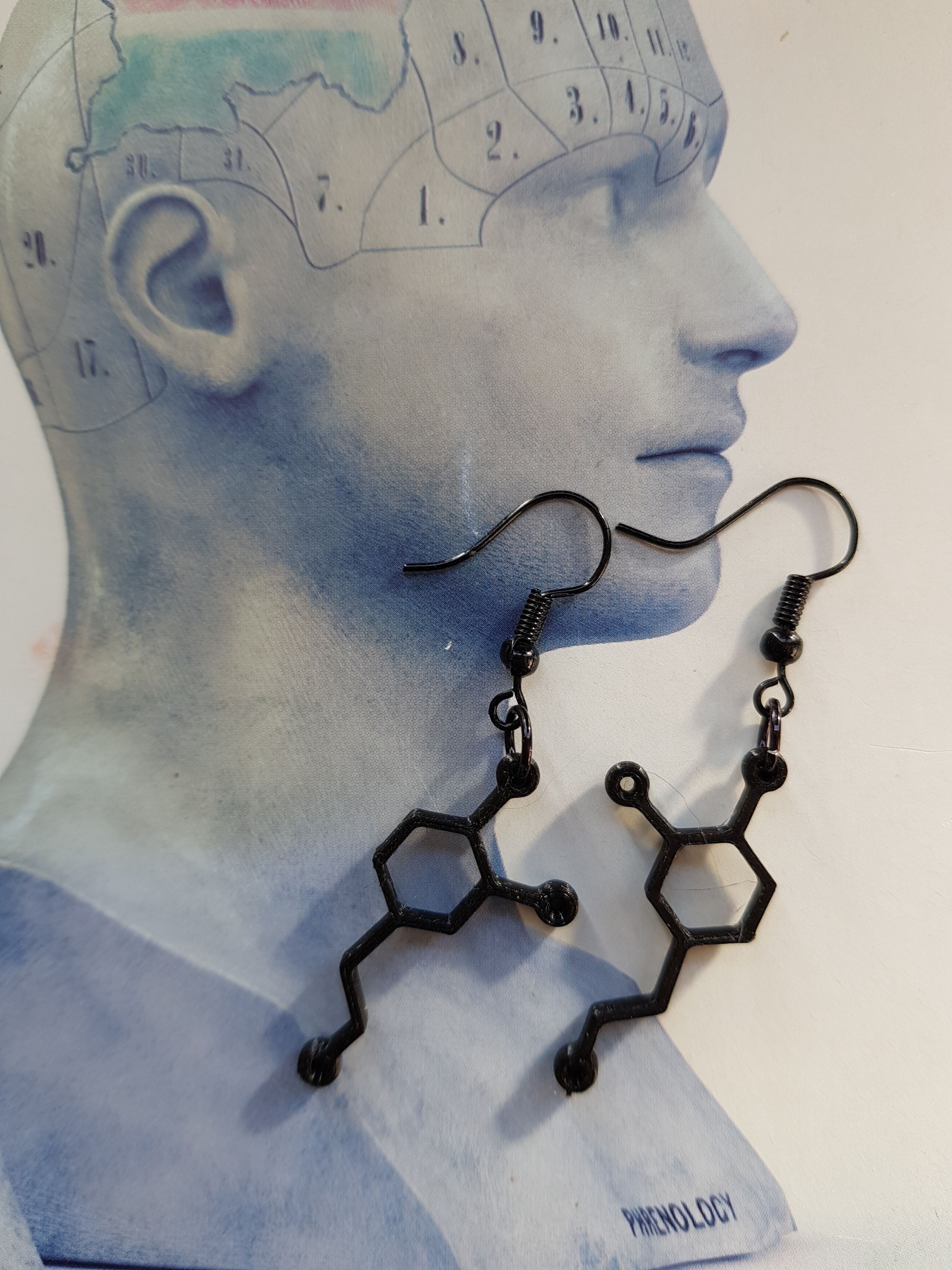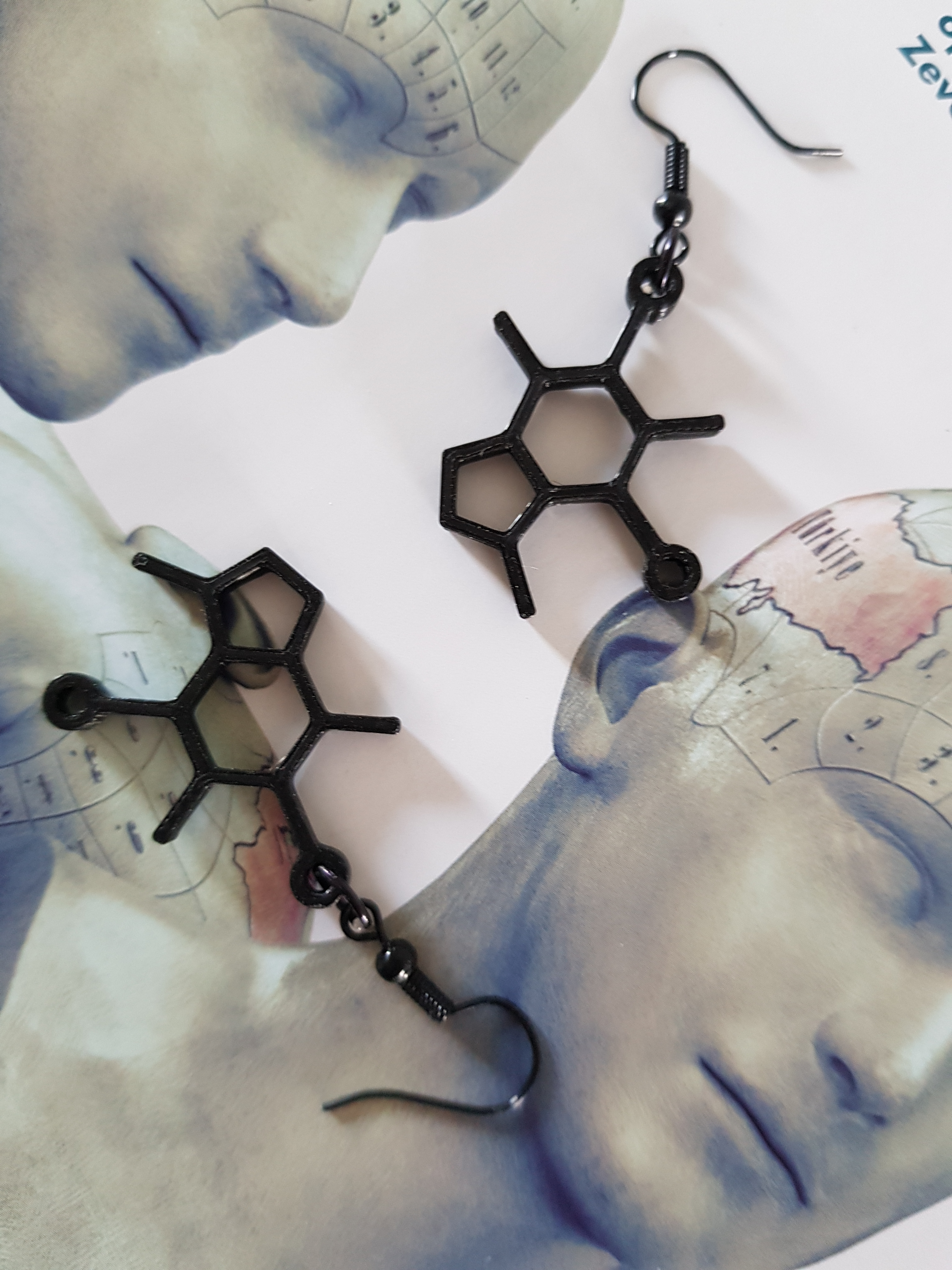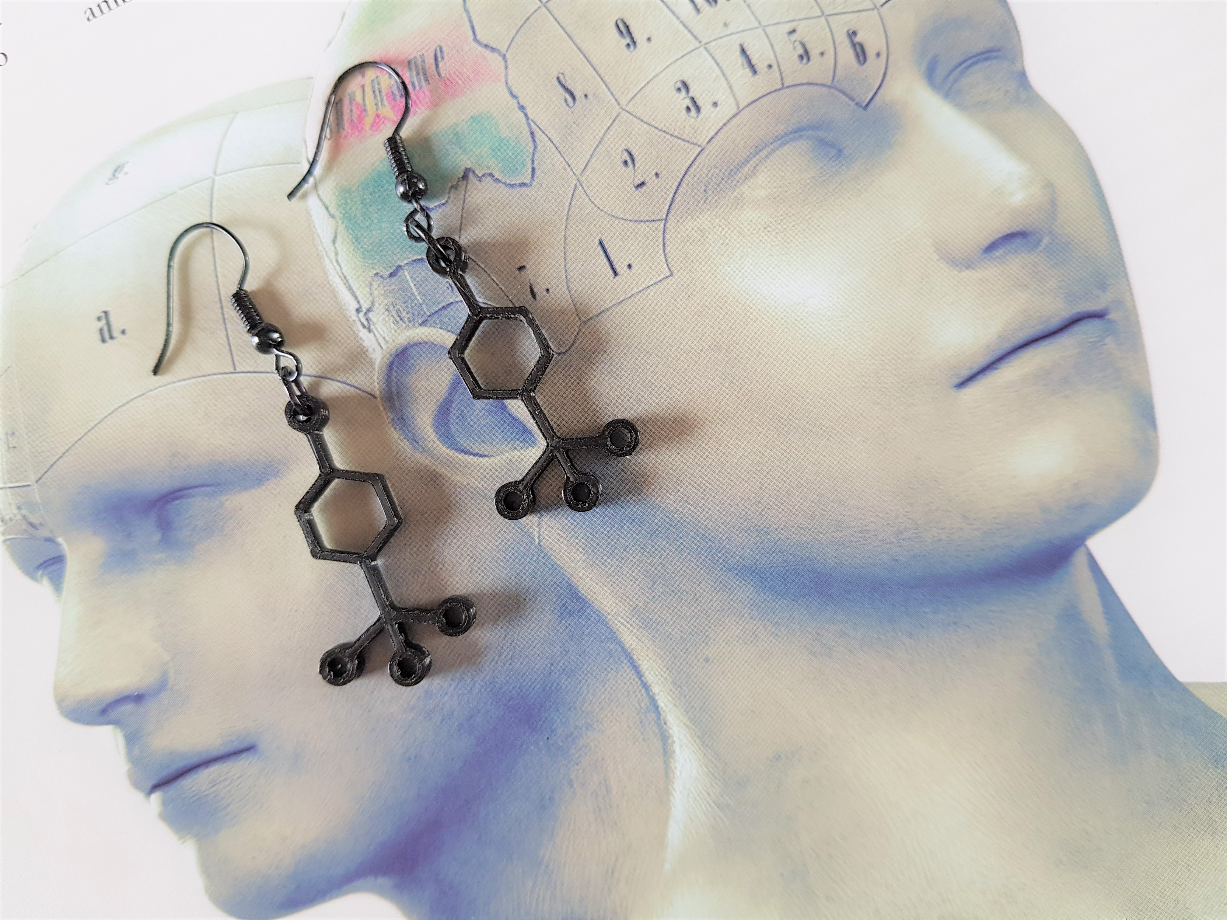 Dopamine Molecule oorbellen in zwart