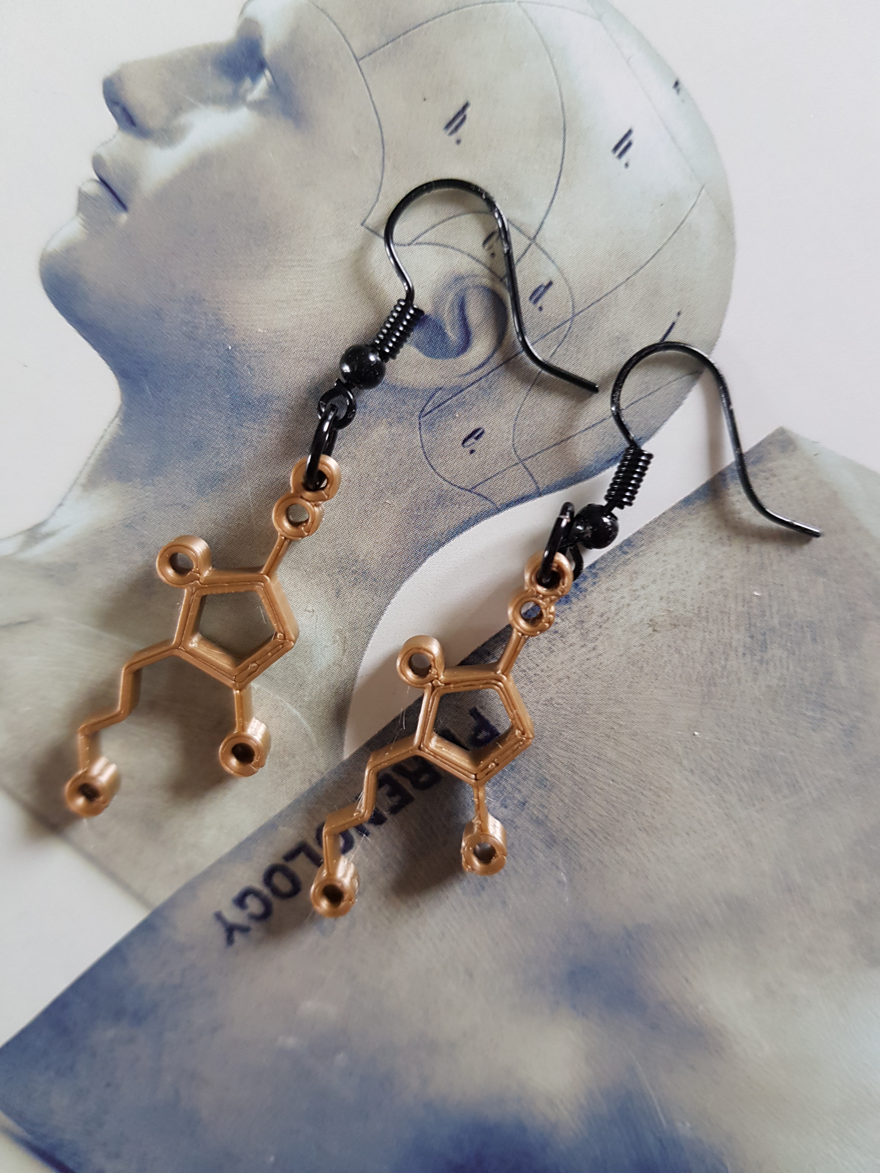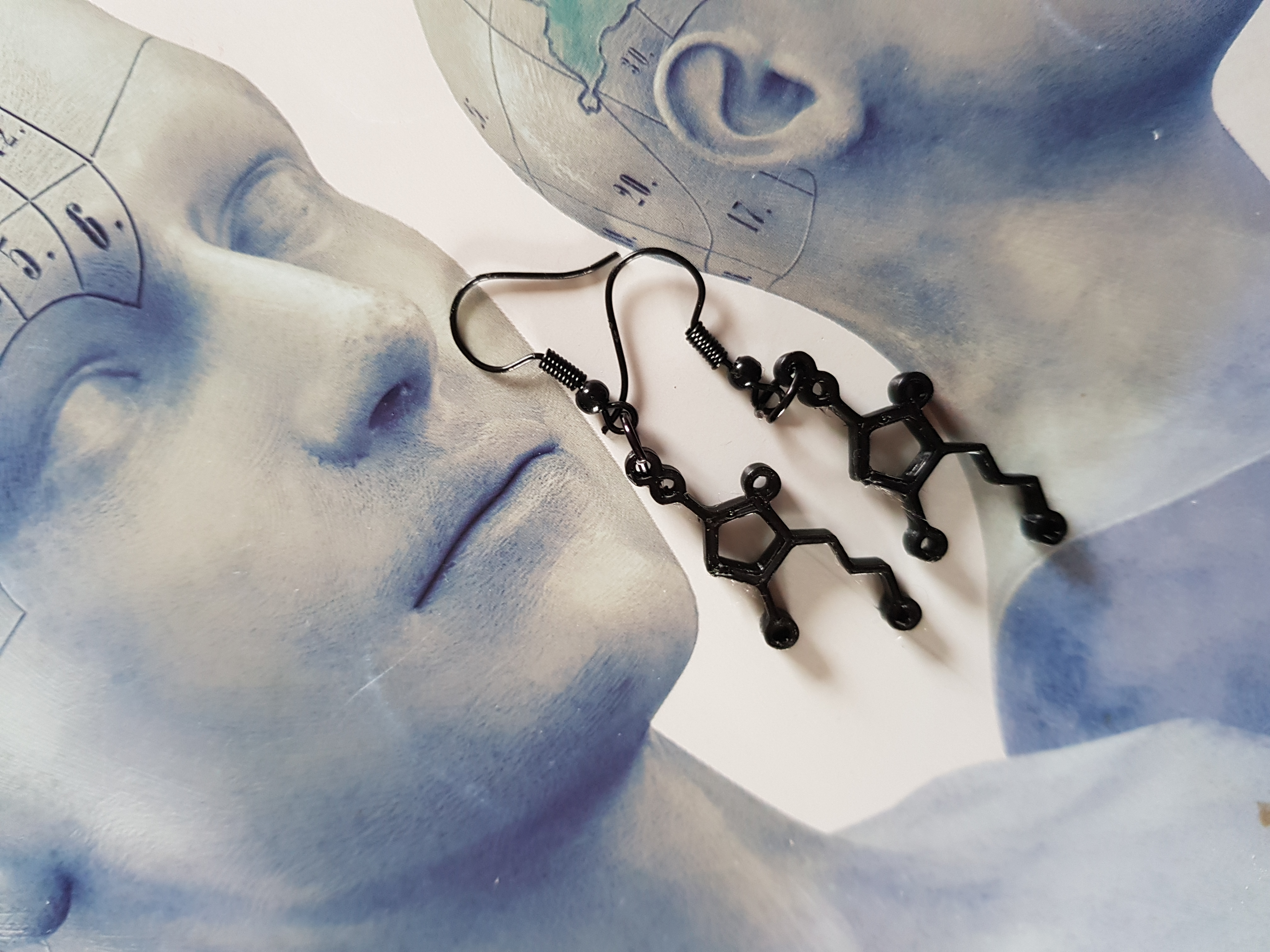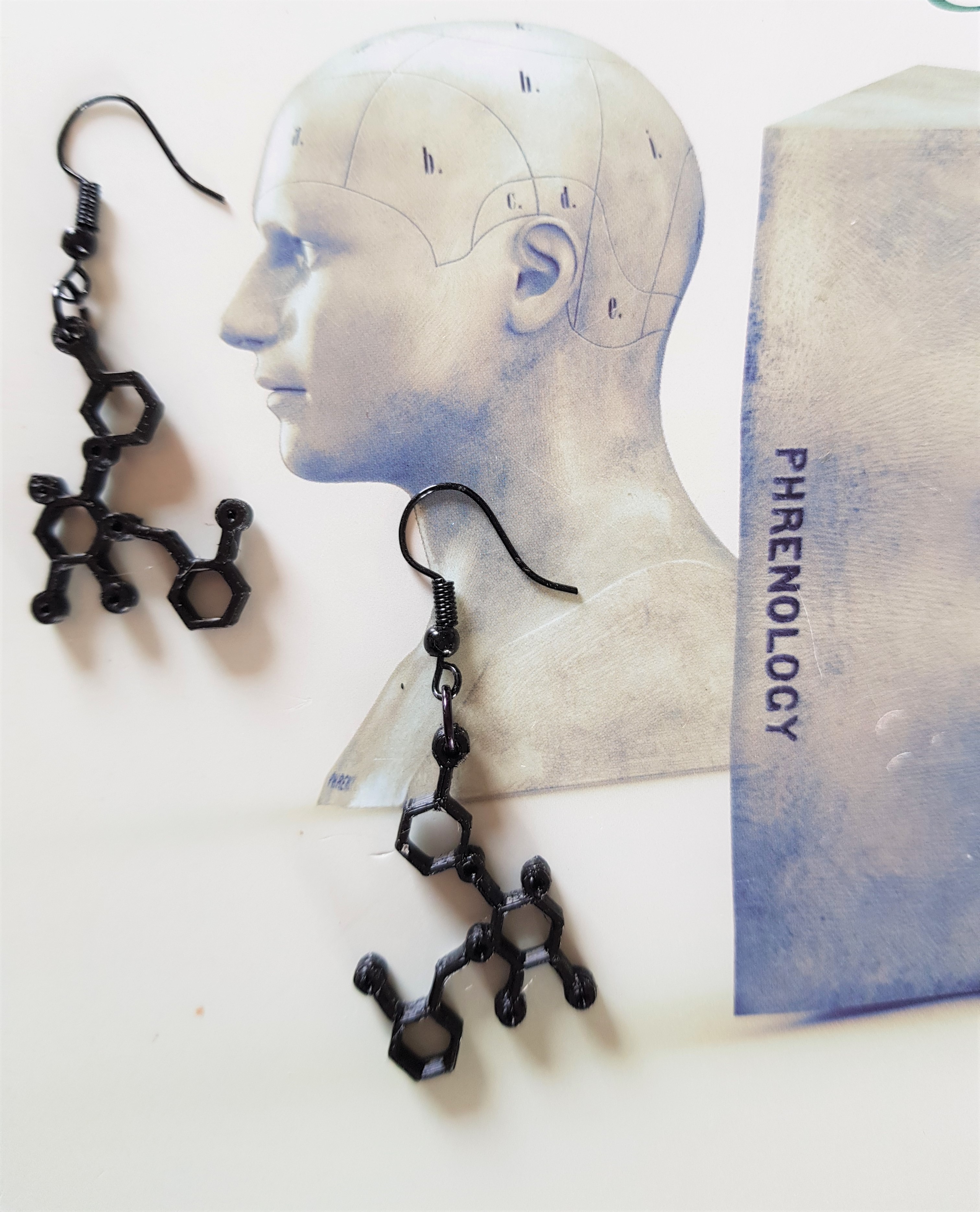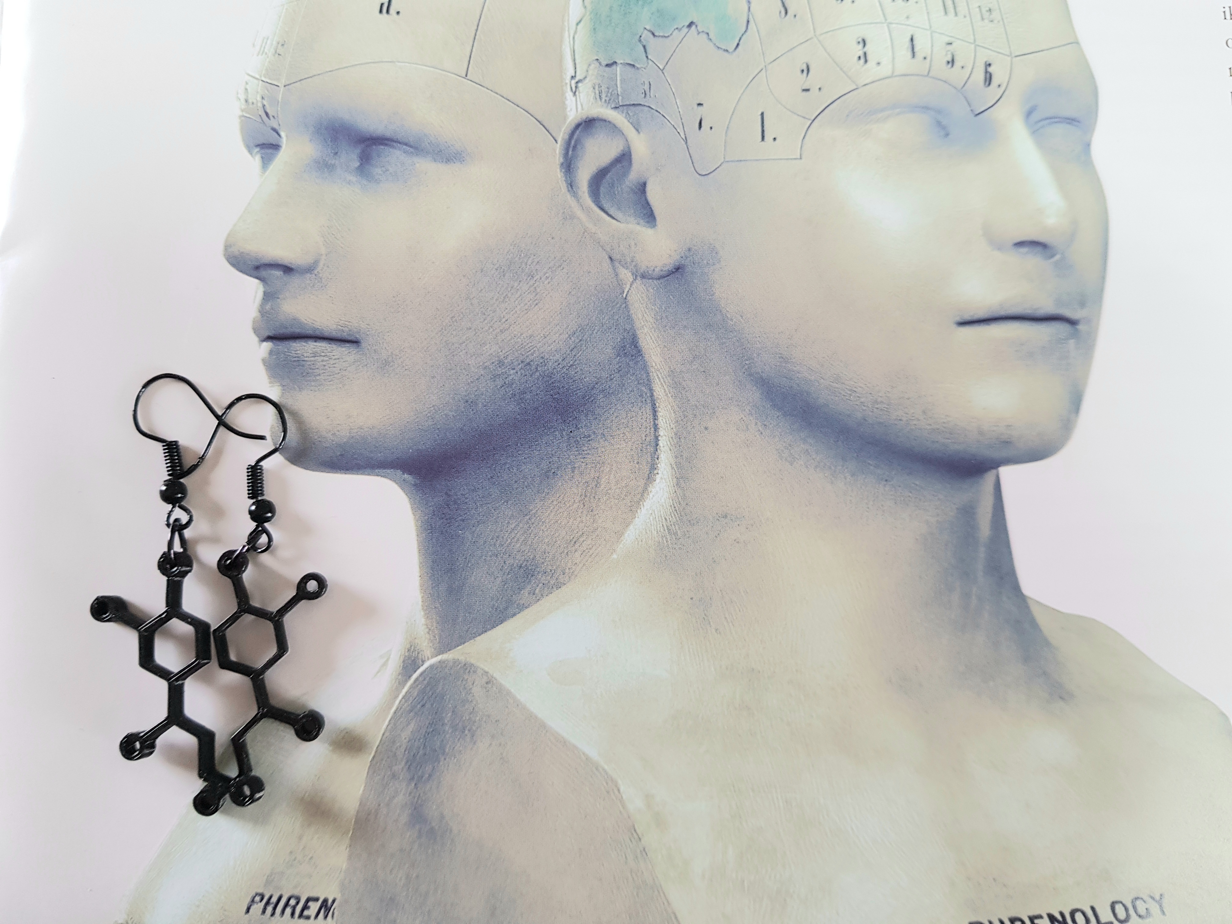 Dopamine Molecule oorbellen in zwart