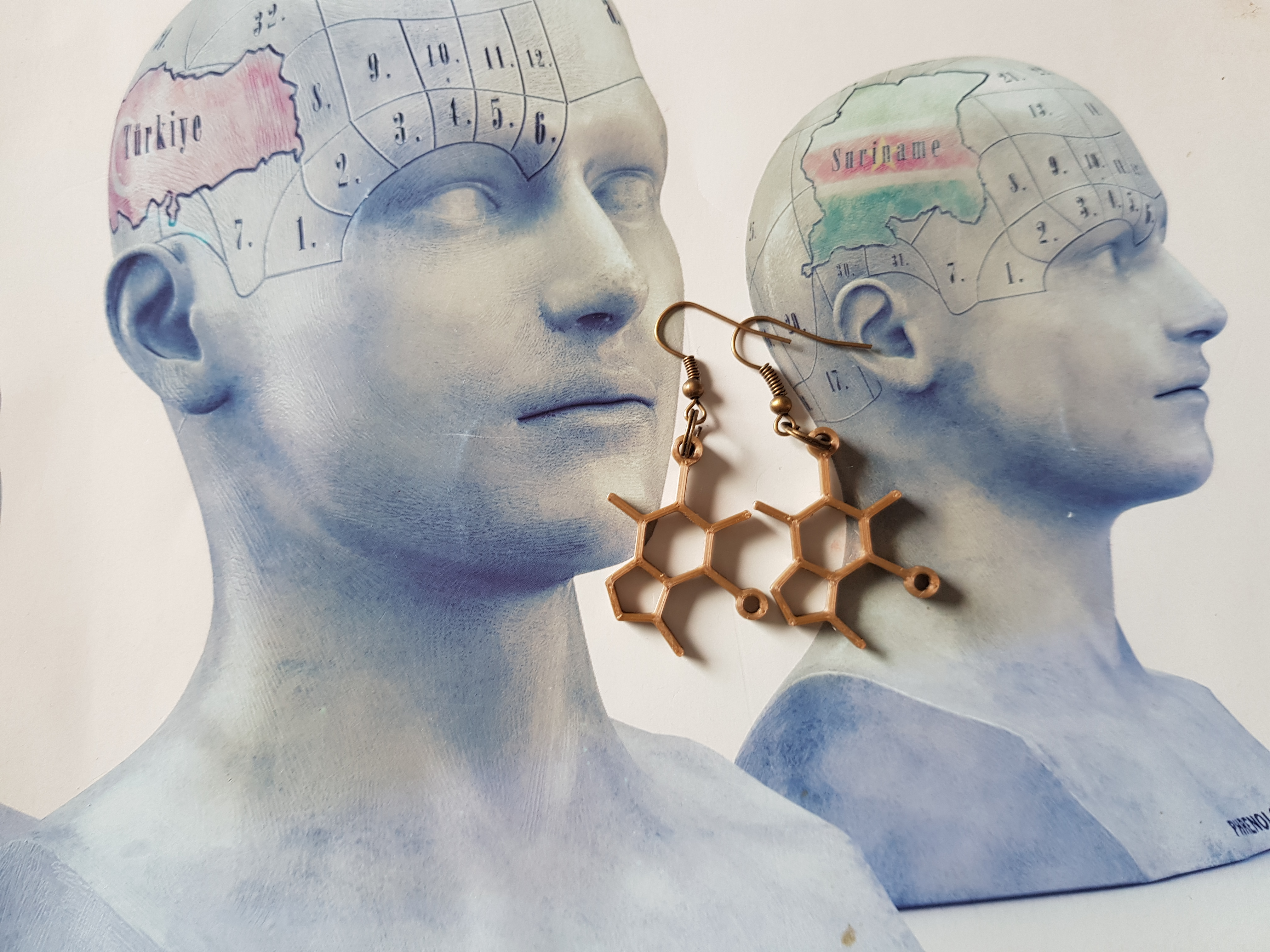 De psilocybine molecule oorbellen zijn 6 cm lang. En zijn superlicht in gewicht, Geen oor-stress bij 1 gram of minder. De Molecules zijn handgemaakt en ontworpen door mij middels het 3D proces. Ik begon pas in Corona-tijd met 3D-print en schreef hier een blogpost over op WordPress. https://wordpress.com/post/madebymirjamblog.wordpress.com/8640 Handgemaakt, dus niet perfect. Psilocybine molecule oorbellen, wetenschap chemisch sieraad, Psychedelisch paddo drug, Deze Magische paddenstoelen hebben mogelijk een effect op depressie behandeling. Ik hoop het! Want het is een rot-ziekte. Voor een goed behandeling is er nog veel onderzoek nodig! Gelukkig wordt al veel onderzoek hiernaar gedaan in Nederland.