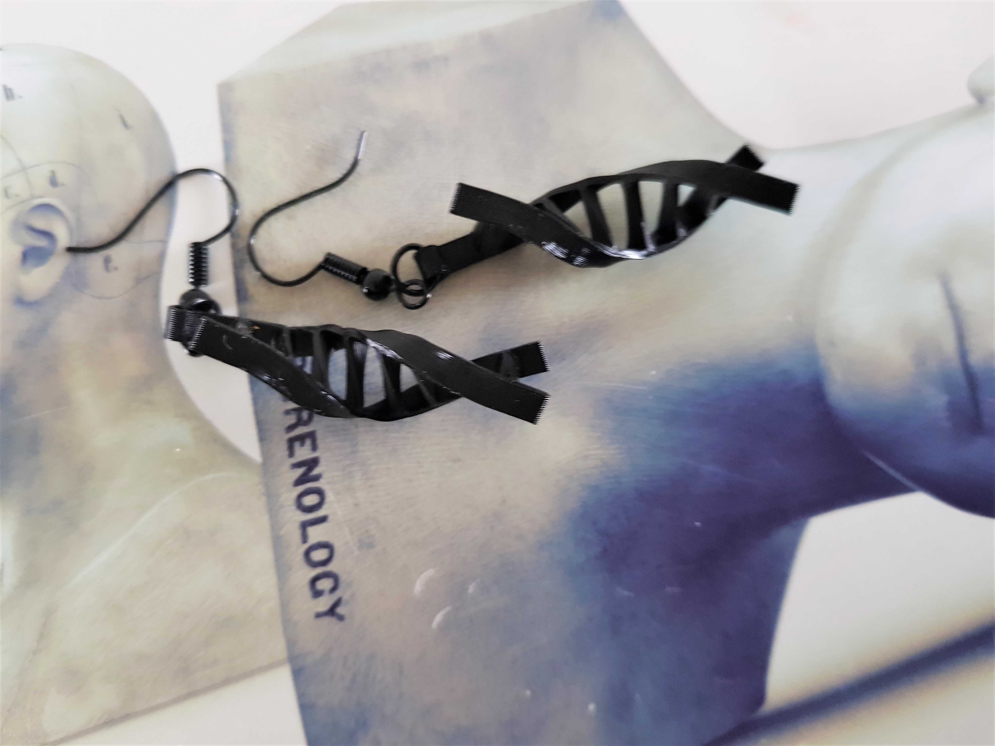 DNA molecule oorbellen in zwart