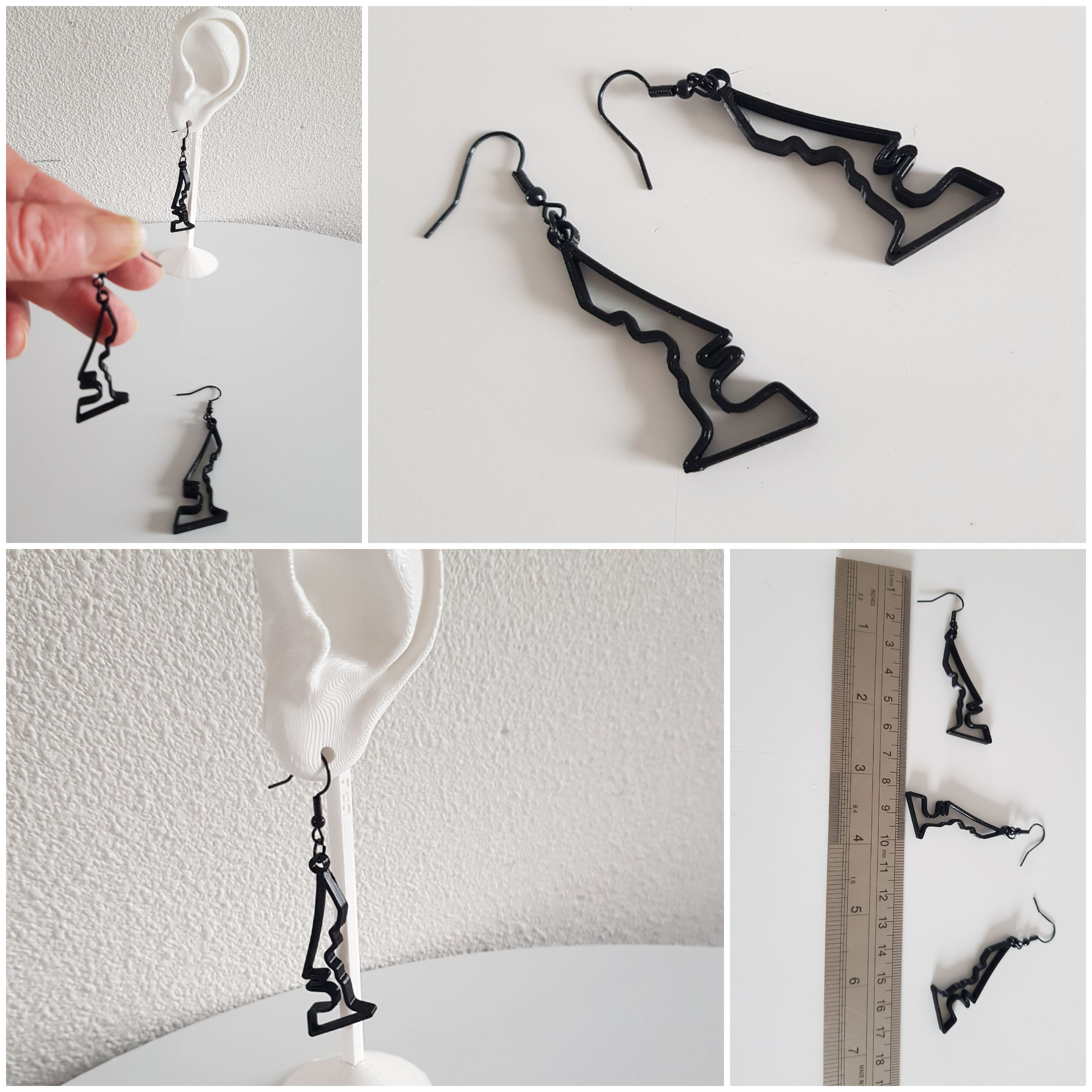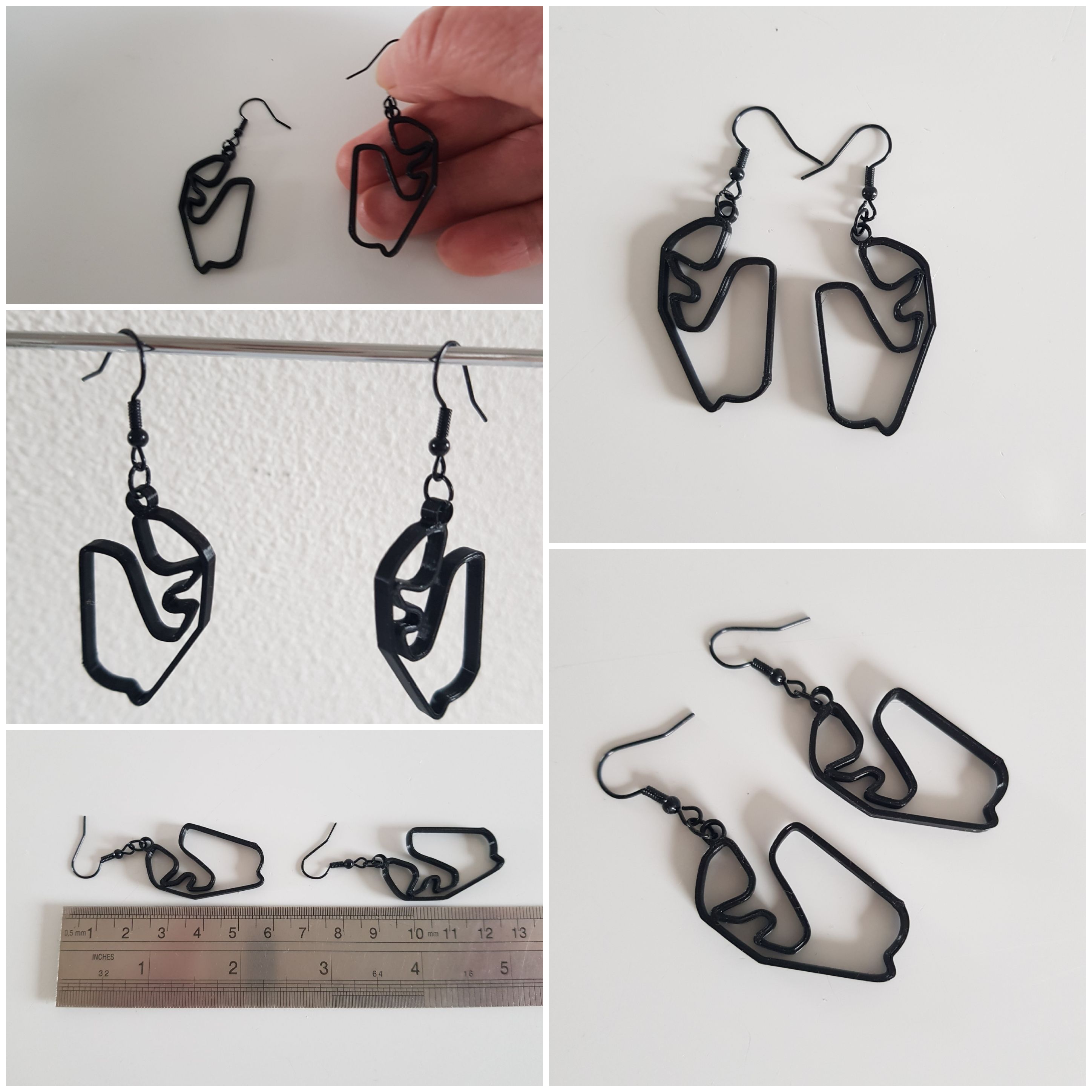 Deze Formule 1 oorbellen van het Japan circuit zijn een uitstekend GP cadeau voor je vrienden en geliefden, die ook van racen houden en af en toe racen of supporter zijn op dit autorace rallycross. Als U een zilveren broche of zwarte pin-broche van een van dit Singapore cirtcuit wilt, contact me even….U ziet voorbeelden hiervan in mijn shop. De oorbellen zijn gemaakt van nikkelvrij zwart licht staal. Deze circuit oorbellen zijn ongeveer 6 cm lang of 2.5 inch en zijn super lichtgewicht, Breedte is ongeveer 2 cm. Er is geen oor-stress bij 1 gram of minder. Ze zijn fijn licht draagbaar. Het circuit is handgemaakt en ontworpen door mij met behulp van het 3D-proces met biologisch afbreekbaar filament. Ik ben pas in Corona-tijd begonnen met 3D-printen en heb hierover een blogpost geschreven op WordPress. https://wordpress.com/post/madebymirjamblog.wordpress.com/8640 Lengte zwarte oorbellen ca. 6 cm Breedte is 2 cm. Gewicht is minder dan 1 gram voor 2 oorbellen. Dus absoluut geen oor-stress tijdens de race… Ik heb ook nog nog meer circuit sieraden gemaakt. Je vindt haar hier:
