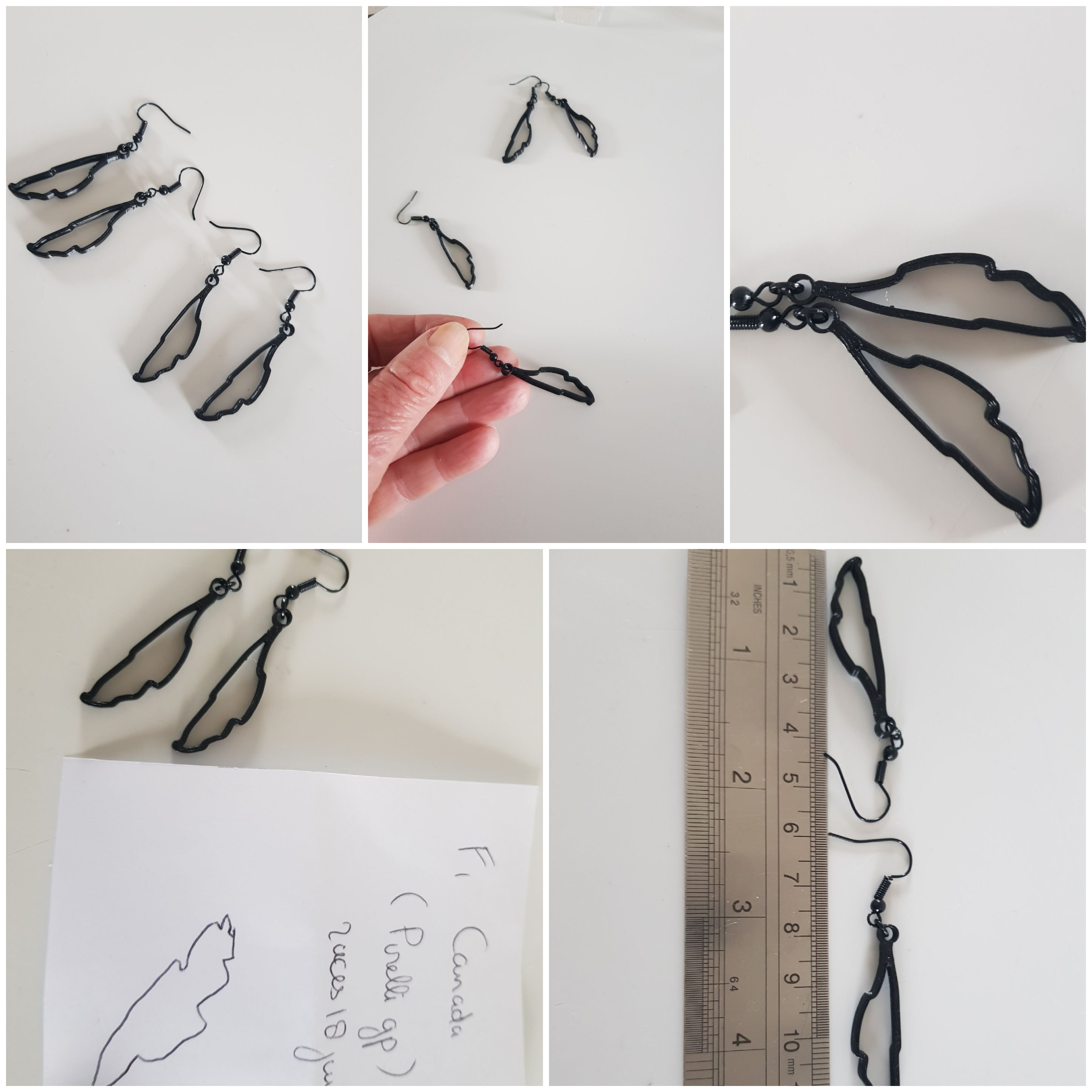 Deze Formule 1 oorbellen van het circuit van Canada zijn een uitstekend cadeau voor je GrandPrix vrienden en geliefden, die ook van racen houden en af en toe racen of supporter zijn op deze autoracing baan. Als U een zilveren broche of zwarte pin-broche van een van dit Singapore cirtcuit wilt, contact me even….U ziet voorbeelden hiervan in mijn shop. De oorbellen zijn gemaakt van nikkelvrij zwart licht staal. Deze circuit oorbellen zijn ongeveer 6 cm lang of 2.5 inch en zijn super lichtgewicht, Breedte is ongeveer 2 cm. Er is geen oor-stress bij 1 gram of minder. Ze zijn fijn licht draagbaar. Het circuit is handgemaakt en ontworpen door mij met behulp van het 3D-proces met biologisch afbreekbaar filament. Ik ben pas in Corona-tijd begonnen met 3D-printen en heb hierover een blogpost geschreven op WordPress. https://wordpress.com/post/madebymirjamblog.wordpress.com/8640 Lengte zwarte oorbellen ca. 6 cm Breedte is 2 cm. Gewicht is minder dan 1 gram voor 2 oorbellen. Dus absoluut geen oor-stress tijdens de race…