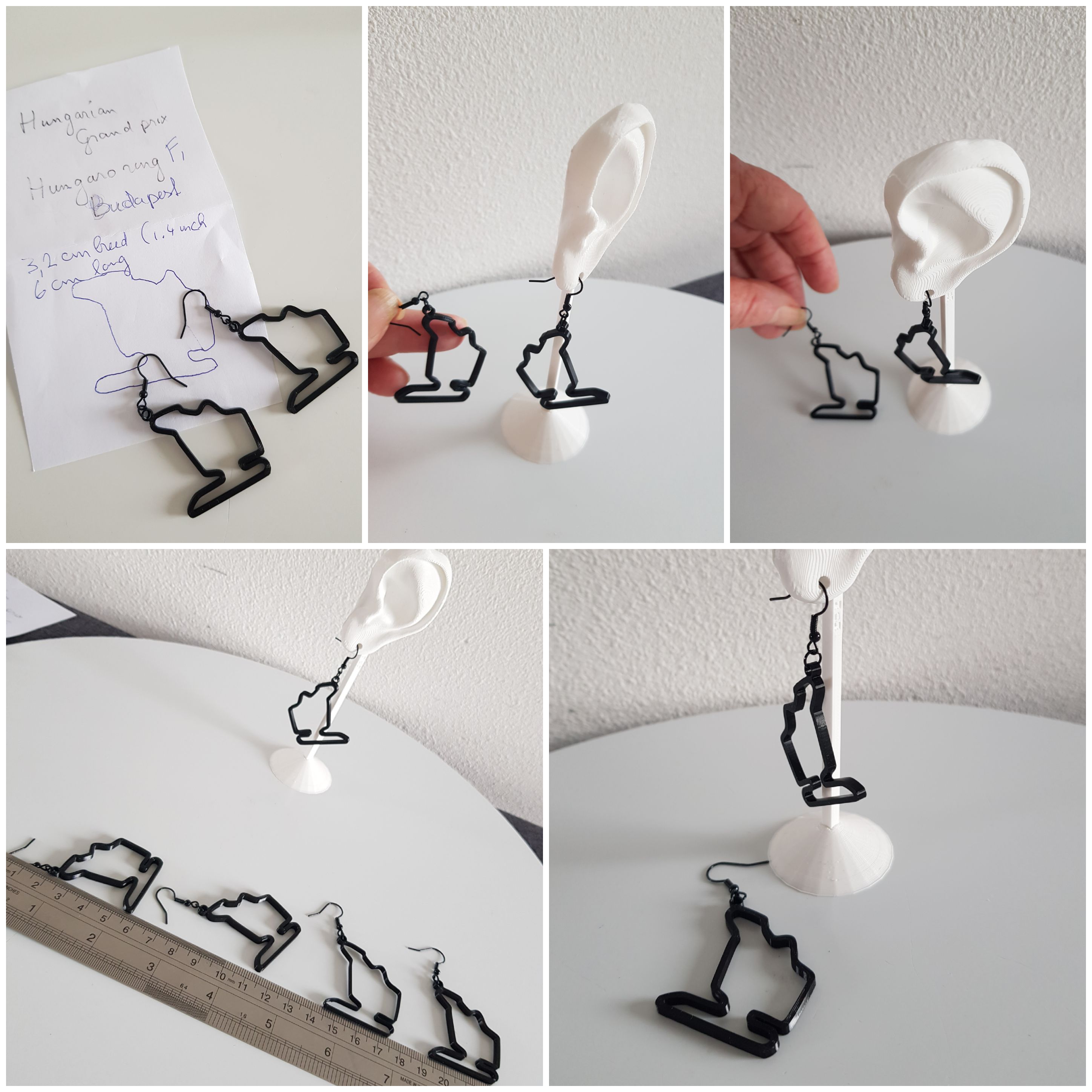 F1 Hongarye circuit oorbellen van de Grand Prix Hungaroring bij Boedapest. autoracing, rallycross, autodrome juweeltje MotoGP race-baan Motorsport sieraad. Ik heb gestruggeld met dit circuit. Mijn eerste versie was te fragiel vond ik. Ze waren mooi, maar konden nog mooier…..dus ik heb ze dikker gemaakt. Alleen jij en ik en de F1 Fans weten dat dit zwarte figuurtje aan je oor een race-circuit is . Hoe leuk. Deze oorbellen zijn een uitstekend cadeau voor je vrienden en geliefden, die ook van racen houden en af en toe racen of supporter zijn op dit Hongaarse circuit……. Als U een zilveren broche of zwarte pin-broche van een van dit cirtcuit wilt contact me even….U ziet voorbeelden hiervan in mijn shop. De oorbellen zijn gemaakt van nikkelvrij zwart licht staal. Deze circuit oorbellen zijn ongeveer 6 cm lang en zijn super lichtgewicht, Breedte is ongeveer 3.2 cm. Er is geen oor-stress bij 1 gram of minder. Ze zijn fijn licht draagbaar. Het circuit is handgemaakt en ontworpen door mij met behulp van het 3D-proces met biologisch afbreekbaar filament. Ik ben pas in Corona-tijd begonnen met 3D-printen en heb hierover een blogpost geschreven op WordPress. https://wordpress.com/post/madebymirjamblog.wordpress.com/8640