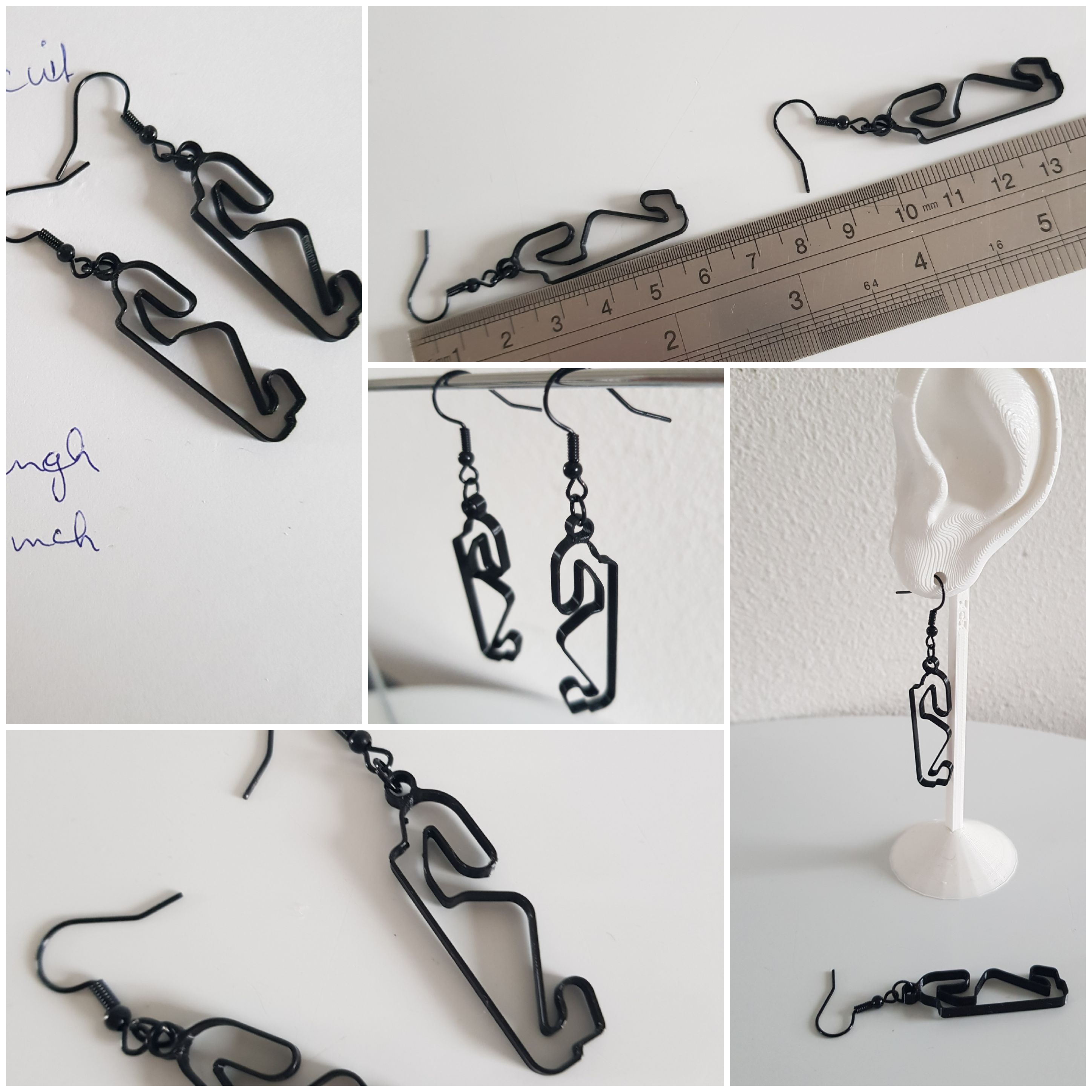 Spaanse F1 oorbellen, circuit Formule1 van Spanje Grandprix race sieraad, autoracing, rallycross, autodrome juweeltje MotoGP race-baan Motorsport. Deze oorbellen zijn een uitstekend cadeau voor je vrienden en geliefden, die ook van racen houden en af en toe racen of supporter zijn op dit Spaanse circuit……. Als U een zilveren broche of zwarte pin-broche van een van dit Spaanse cirtcuit wilt contact me even….U ziet voorbeelden hiervan in mijn shop. De oorbellen zijn gemaakt van nikkelvrij zwart licht staal. Deze circuit oorbellen zijn ongeveer 6 cm lang of 2.5 inch en zijn super lichtgewicht, Breedte is ongeveer 1 cm. Er is geen oor-stress bij 1 gram of minder. Ze zijn fijn licht draagbaar. Het circuit is handgemaakt en ontworpen door mij met behulp van het 3D-proces met biologisch afbreekbaar filament. Ik ben pas in Corona-tijd begonnen met 3D-printen en heb hierover een blogpost geschreven op WordPress. https://wordpress.com/post/madebymirjamblog.wordpress.com/8640 Lengte zwarte oorbellen ca. 6 cm Breedte is 1 cm. Gewicht is minder dan 1 gram voor 2 oorbellen. Dus absoluut geen oor-stress tijdens de race…