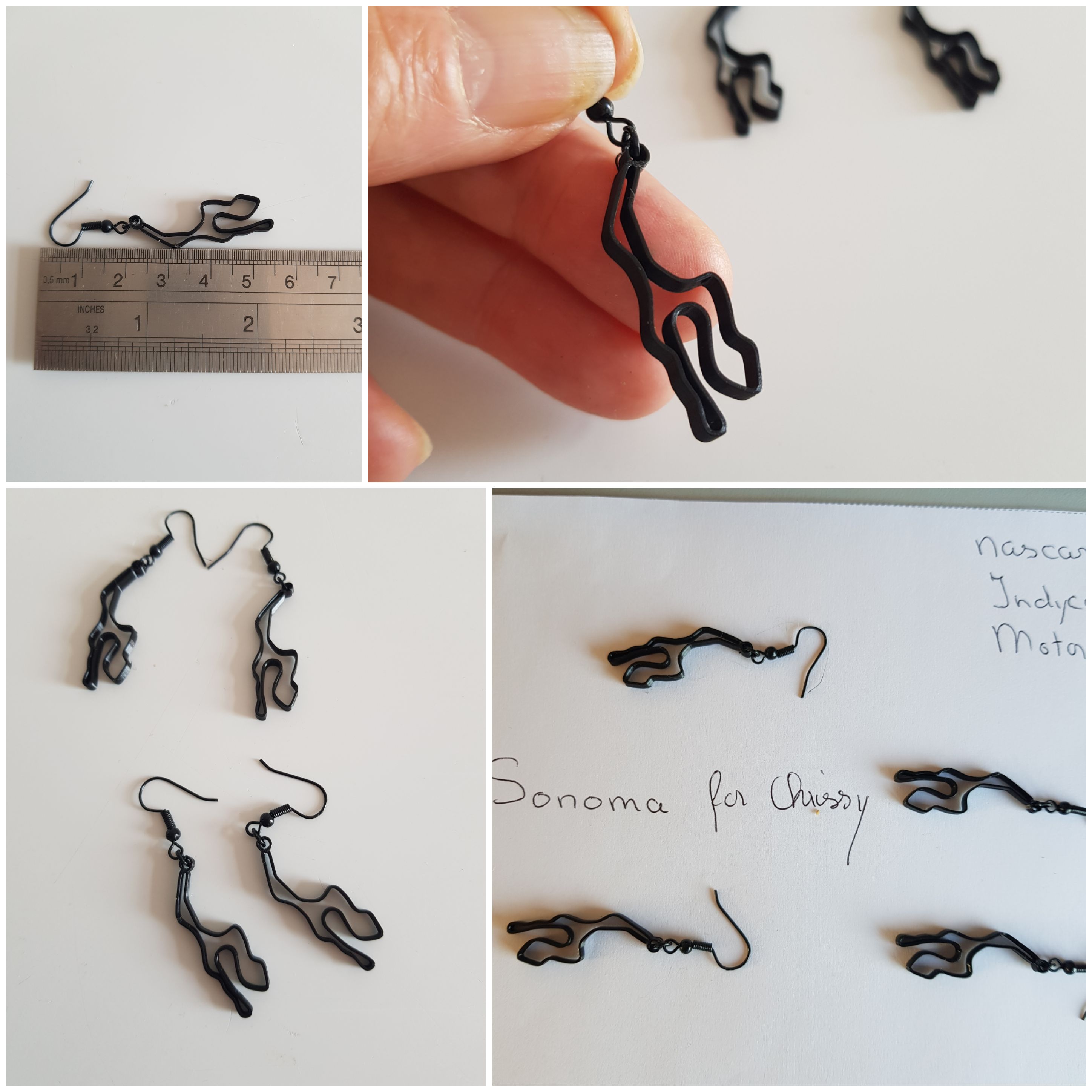 Deze Grand Prix oorbellen van het Amerikaanse Somona circuit zijn een uitstekend cadeau voor je vrienden en geliefden, die ook van de Formule 1 houden of af en toe supporter zijn op dit circuit. Als U een zilveren broche of zwarte pin-broche van een van dit circuit wilt contact me even….U ziet voorbeelden hiervan in mijn shop. De oorbellen zijn gemaakt van nikkelvrij zwart licht staal. Deze circuit oorbellen zijn ongeveer 6 cm lang en zijn super lichtgewicht, Breedte is ongeveer 2 cm. Er is geen oor-stress bij 1 gram of minder. Ze zijn fijn licht draagbaar. Het circuit is handgemaakt en ontworpen door mij met behulp van het 3D-proces met biologisch afbreekbaar filament. Ik ben pas in Corona-tijd begonnen met 3D-printen en heb hierover een blogpost geschreven op WordPress. https://wordpress.com/post/madebymirjamblog.wordpress.com/8640 Ik heb ook nog nog meer circuit sieraden gemaakt. Je vindt haar hier: http://etsy.com/shop/madebymirjam
