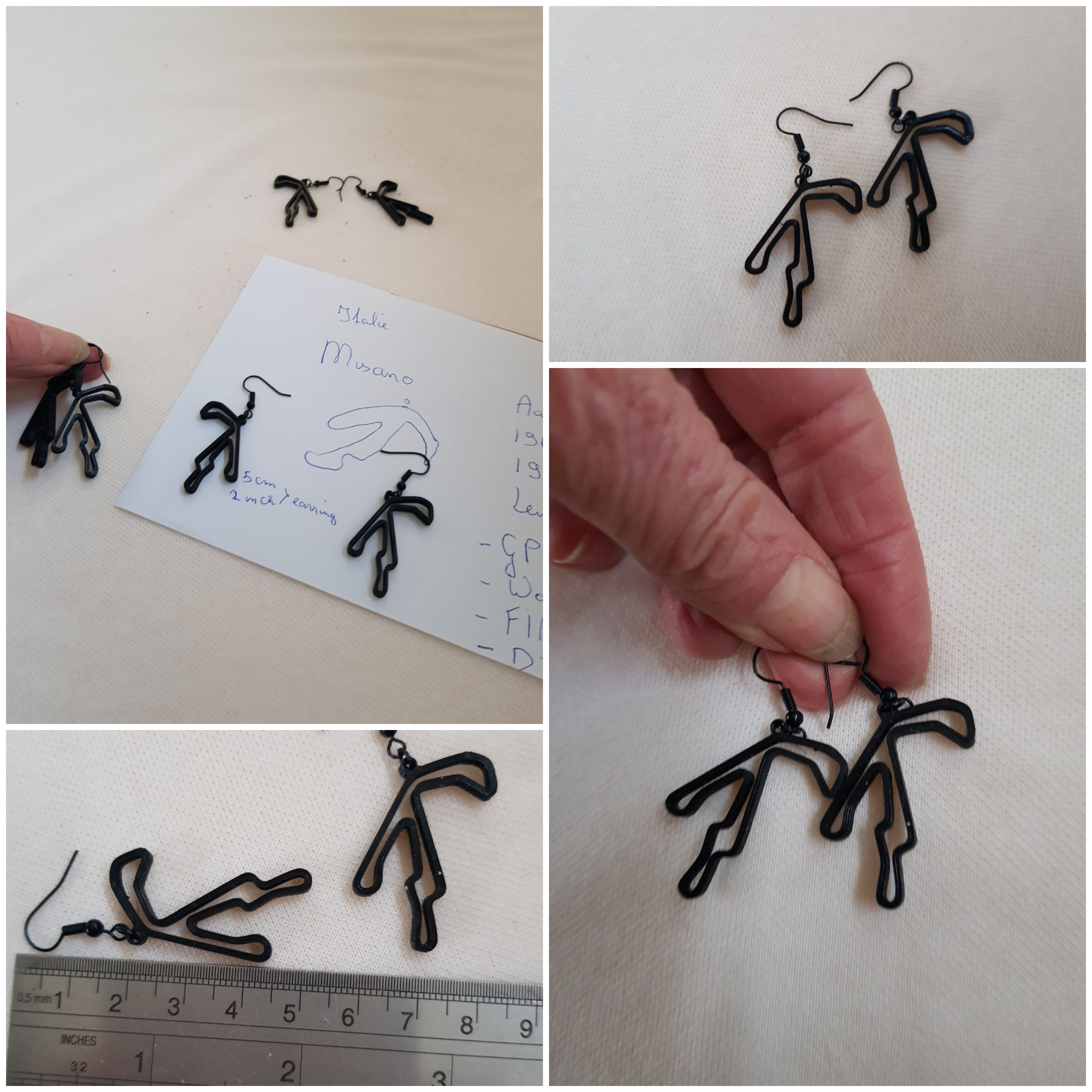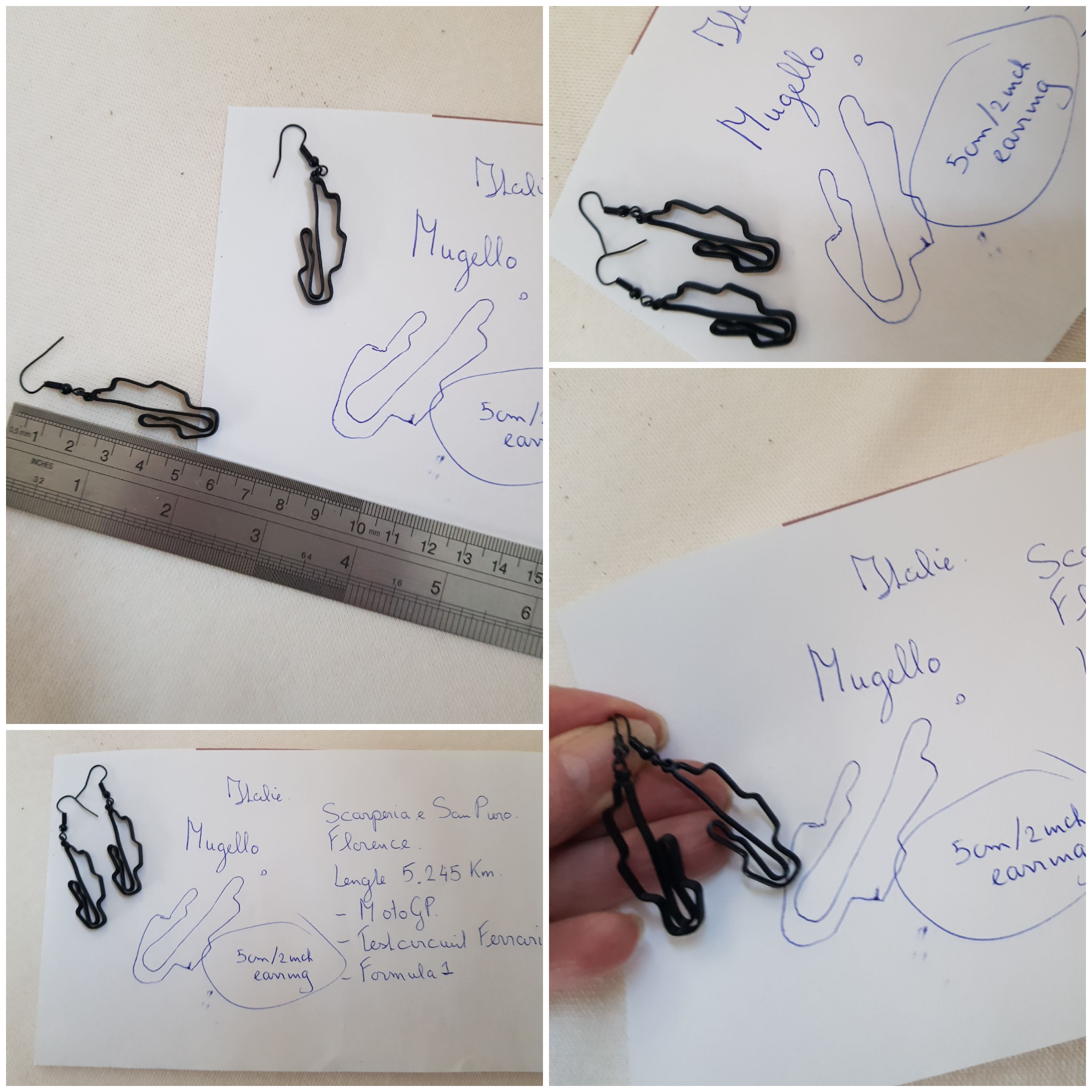 Italiaanse F1 oorbellen, Formule1 Grandprix race Circuit van Italie sieraad, autoracing, rallycross, autodrome juweeltje MotoGP race-baan Motorsport. Deze oorbellen zijn een uitstekend cadeau voor je vrienden en geliefden, die ook van racen houden en af en toe racen of supporter zijn op deze Italiaanse circuits……. Als U een zilveren broche of zwarte pin-broche van een van deze Italiaanse cirtcuits wilt contact me even….U ziet voorbeelden hiervan in mijn shop. De oorbellen zijn gemaakt van nikkelvrij zwart licht staal. Deze circuit oorbellen zijn ongeveer 5 cm lang of 2 inch en zijn super lichtgewicht, geen oor-stress bij 1 gram of minder. Het circuit is handgemaakt en ontworpen door mij met behulp van het 3D-proces met biologisch afbreekbaar filament. Ik ben pas in Corona-tijd begonnen met 3D-printen en heb hierover een blogpost geschreven op WordPress. https://wordpress.com/post/madebymirjamblog.wordpress.com/8640