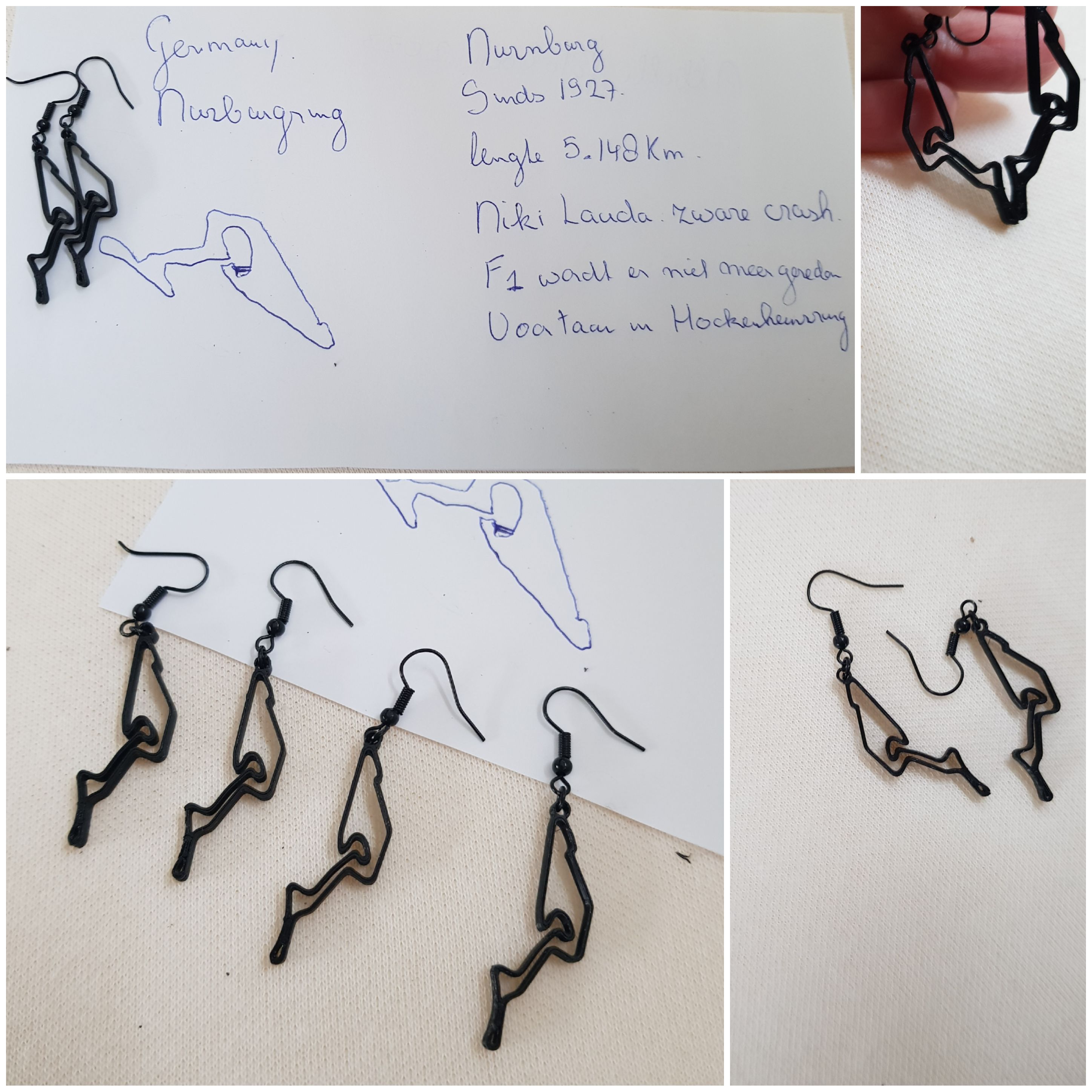 Race circuit oorbellen van Duitsland, Neurenbergring, GP F1 sieraad cadeau, Formule 1 race juweeltjes, Grandprix MotoGP. De oorbellen zijn gemaakt van nikkelvrij zwart licht staal. De oorbellen zijn mijn eigen research en 3D-ontwerp. Deze circuit oorbellen zijn ongeveer 5 cm lang of 2 inch en zijn super lichtgewicht, (Sachsenring + Hockenheimring = 6 cm.) geen oor-stress bij 1 gram of minder gedurende de race. Het circuit is handgemaakt en ontworpen door mij met behulp van het 3D-proces met biologisch afbreekbaar filament. Ik ben pas in Corona-tijd begonnen met 3D-printen en heb hierover een blogpost geschreven op WordPress. https://wordpress.com/post/madebymirjamblog.wordpress.com/8640
