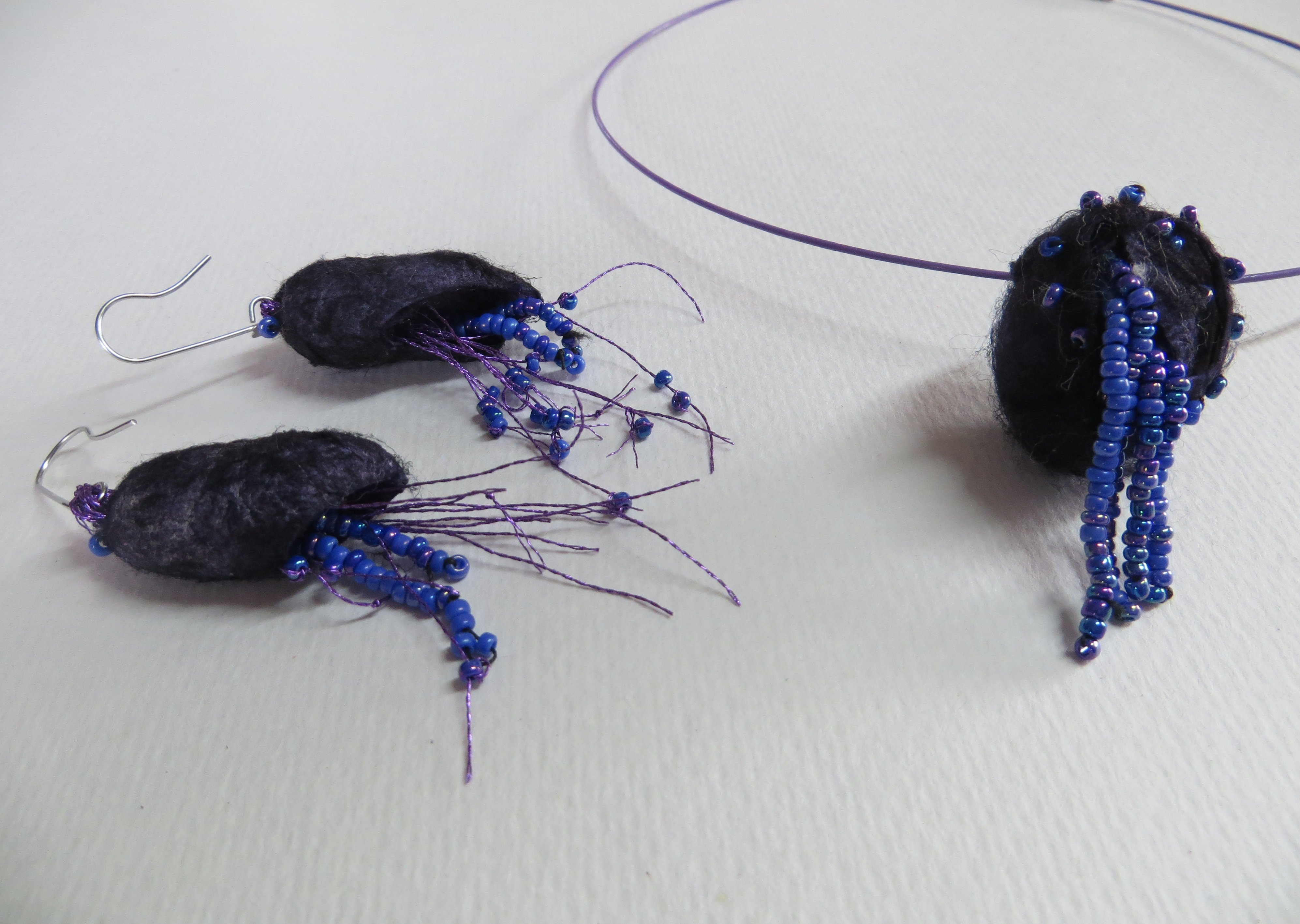 Silk cocoon necklace and earrings