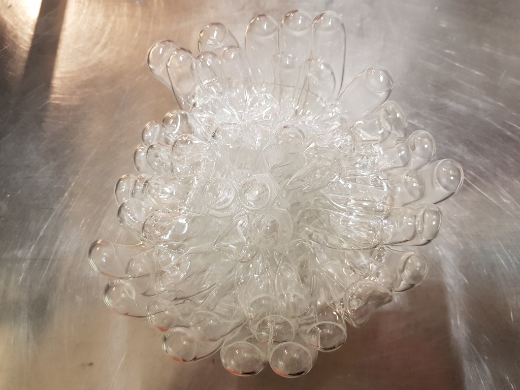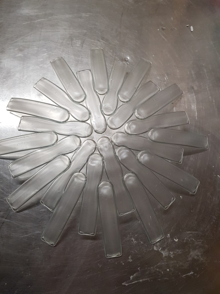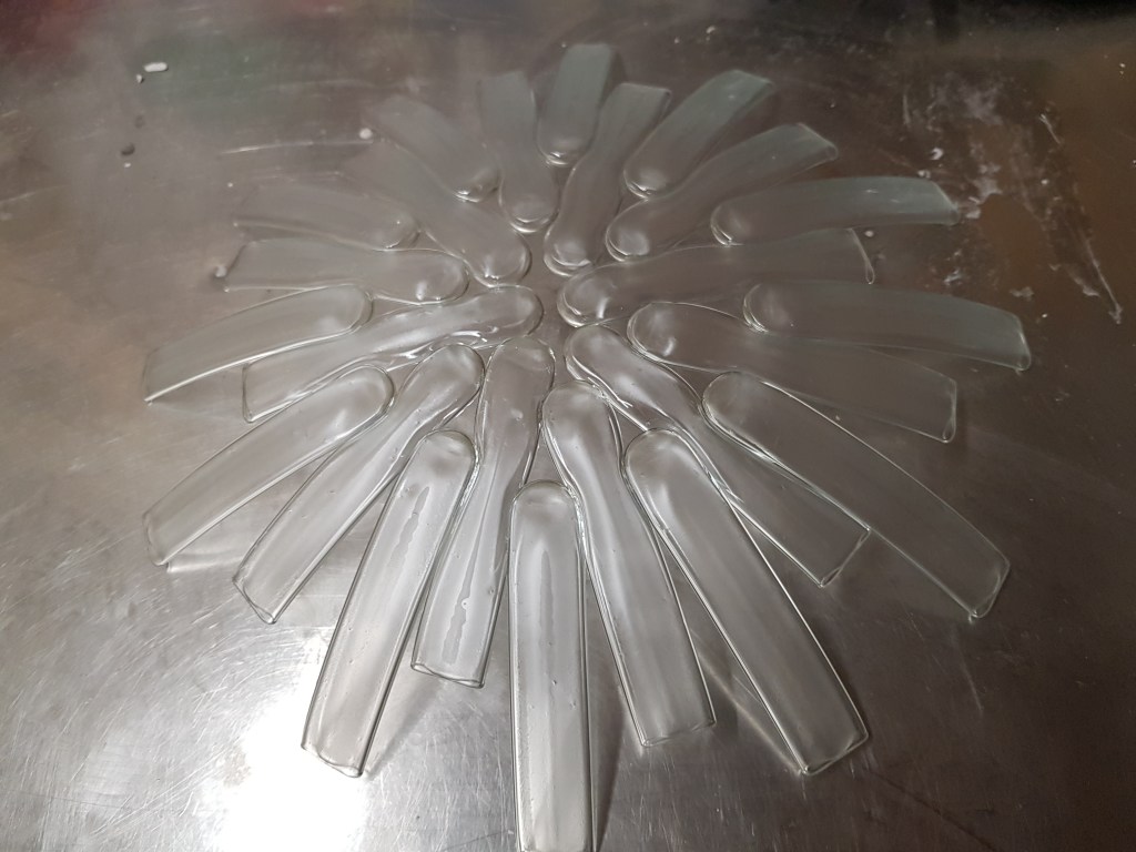- Ga dan het lapje masseren, wrijven en na ongeveer 5-10 minuten zul je merken dat het geheel aan elkaar gevilt is. Je ziet een vage afdruk van de bloemetjes/blaadjes.
